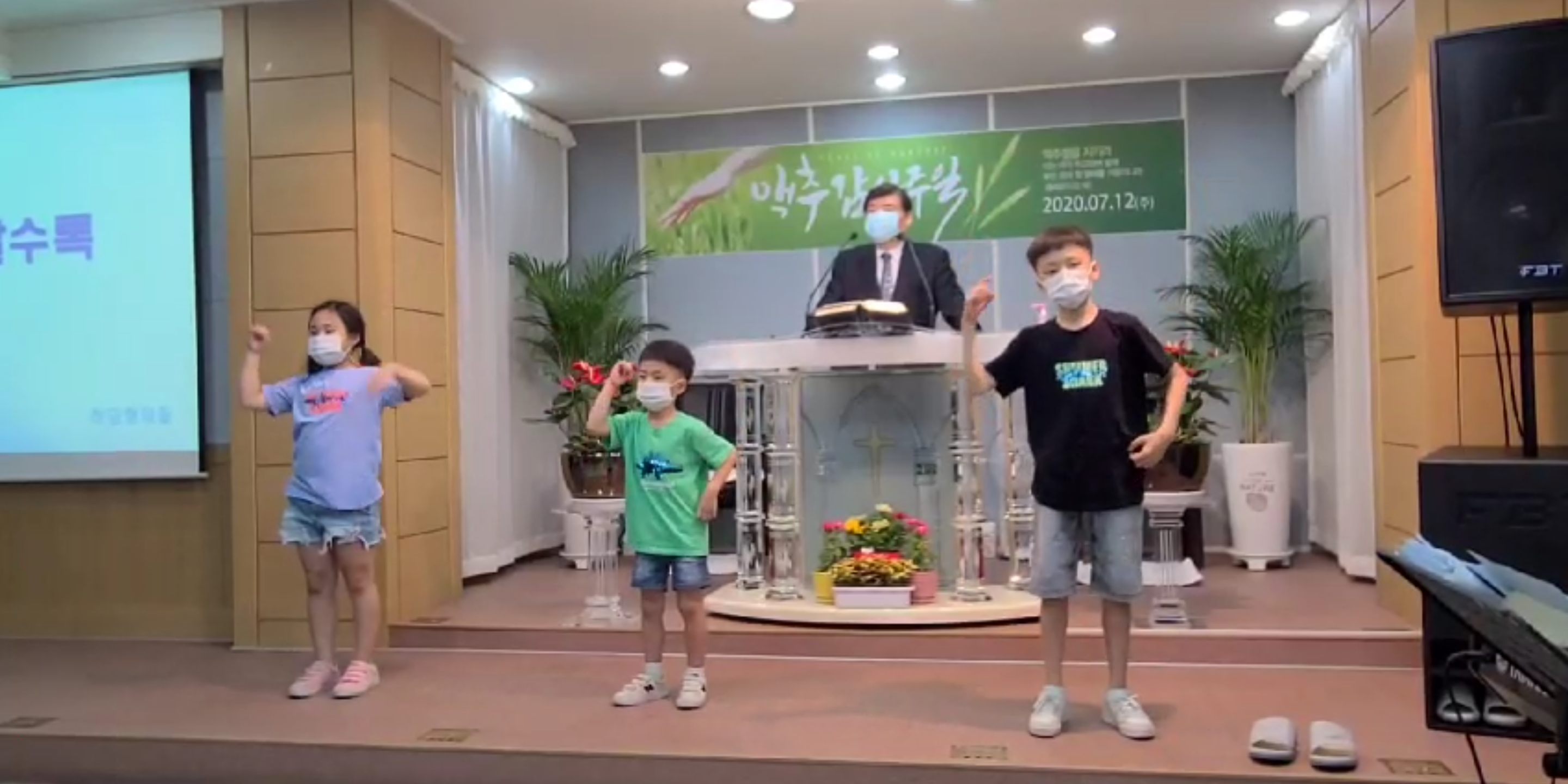 긴 코로나19 속에 방역수칙 잘 지키며 2020. 7. 12. 맥추감사주일을 지냈습니다. 두날개회의 찬양과 워쉽 "Thank you Lord", "꽃들도" 유년부 하담이네 형제들의 워쉽 "감사할수록"
